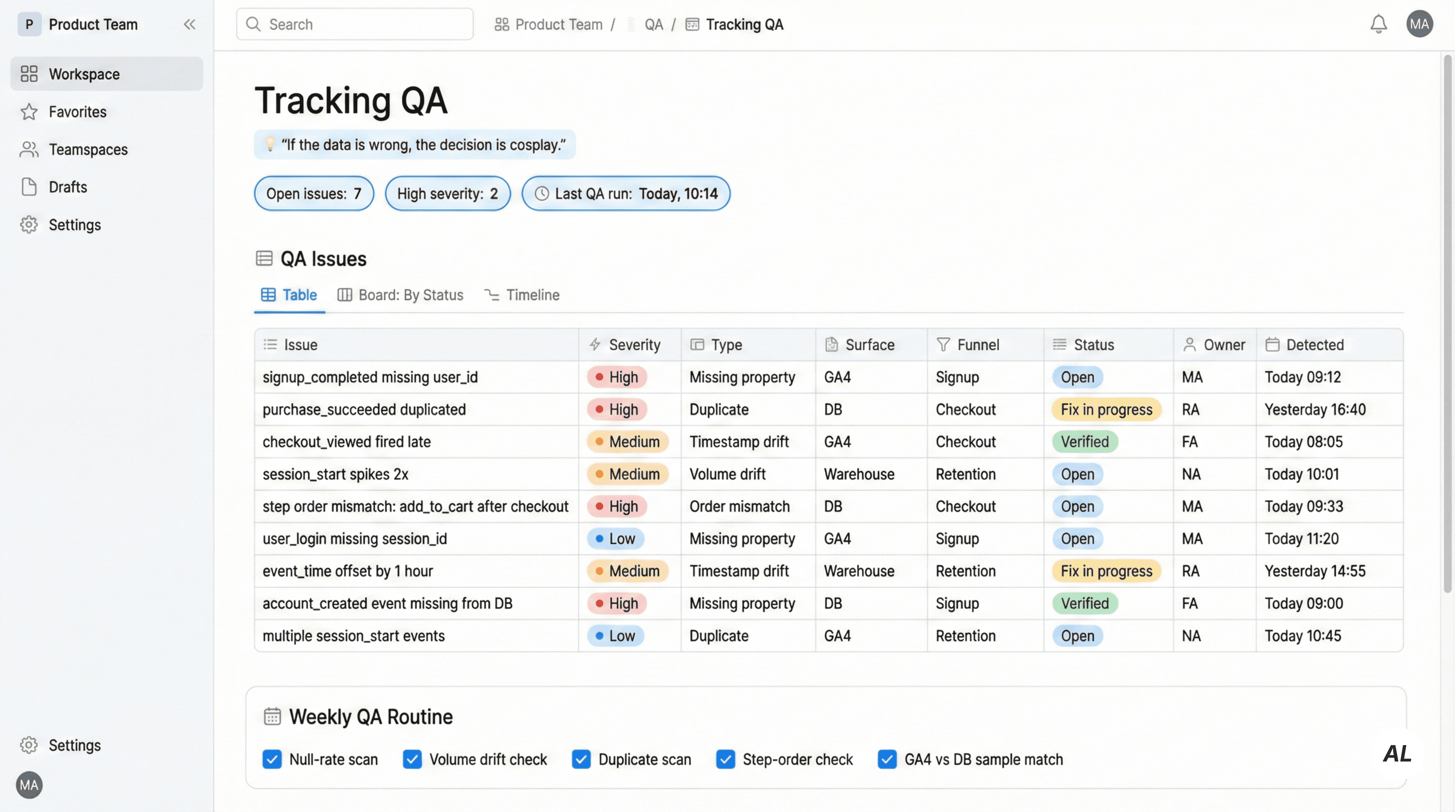 Sistem praktis buat ngakhirin debat metrik. Ada KPI Doc, tracking QA, dan ringkasan hasil yang siap jadi dasar keputusan. Dibangun biar kuat pas di-review, bukan cuma keliatan keren di dashboard.